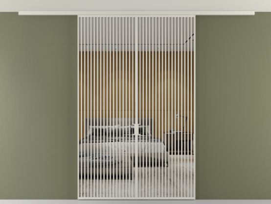 Во всех алюминиевых перегородках, независимо от типа установки, используется компланарный раздвижной механизм, благодаря которому декоративная крышка и полотно находятся в одной плоскости.
