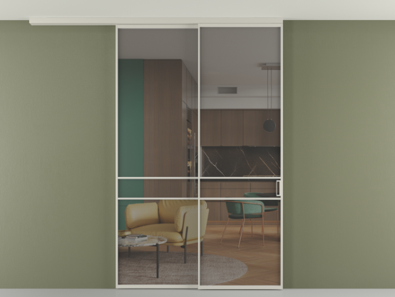 Алюминиевые перегородки имеют единый профиль с алюминиевыми дверьми и легко сочетаются в одном пространстве, не перегружая его. Также их можно комбинировать в интерьере с полотнами из нашего стандартного ассортимента. Помимо этого, система алюминиевых перегородок и дверей координируется со стеновыми панелями Волховец.