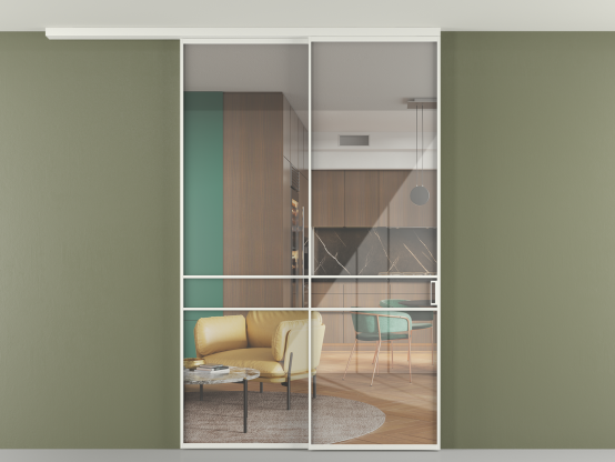 Алюминиевые перегородки имеют единый профиль с алюминиевыми дверьми и легко сочетаются в одном пространстве, не перегружая его. Также их можно комбинировать в интерьере с полотнами из нашего стандартного ассортимента. Помимо этого, система алюминиевых перегородок и дверей координируется со стеновыми панелями Волховец.