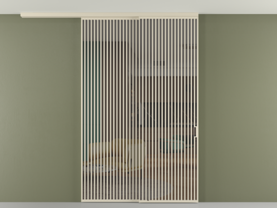 Дополнительно на раздвижную двустворчатую перегородку вдоль стены и четырёхстворчатую перегородку внутри проёма с двумя неподвижным полотнами можно установить механизм синхронного открывания — при открывании одной створки, вторая открывается автоматически.