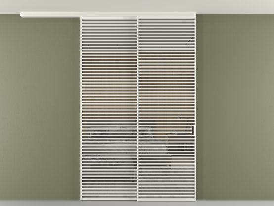 Во всех алюминиевых перегородках, независимо от типа установки, используется компланарный раздвижной механизм, благодаря которому декоративная крышка и полотно находятся в одной плоскости.
