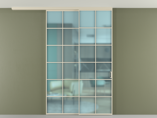 Дополнительно на раздвижную двустворчатую перегородку вдоль стены и четырёхстворчатую перегородку внутри проёма с двумя неподвижным полотнами можно установить механизм синхронного открывания — при открывании одной створки, вторая открывается автоматически.