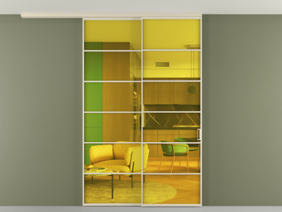 Алюминиевые перегородки имеют единый профиль с алюминиевыми дверьми и легко сочетаются в одном пространстве, не перегружая его. Также их можно комбинировать в интерьере с полотнами из нашего стандартного ассортимента. Помимо этого, система алюминиевых перегородок и дверей координируется со стеновыми панелями Волховец.
