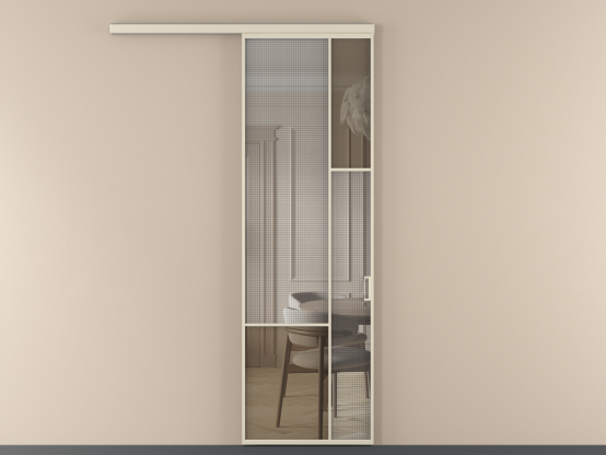Во всех алюминиевых перегородках, независимо от типа установки, используется компланарный раздвижной механизм, благодаря которому декоративная крышка и полотно находятся в одной плоскости.