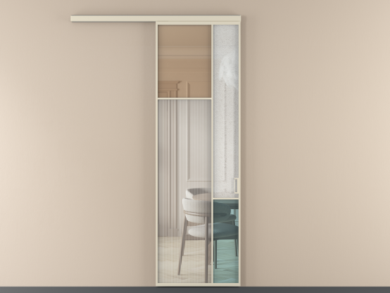 Во всех алюминиевых перегородках, независимо от типа установки, используется компланарный раздвижной механизм, благодаря которому декоративная крышка и полотно находятся в одной плоскости.