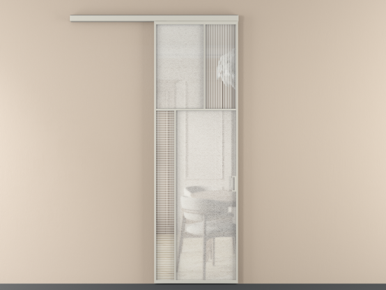 Во всех алюминиевых перегородках, независимо от типа установки, используется компланарный раздвижной механизм, благодаря которому декоративная крышка и полотно находятся в одной плоскости.
