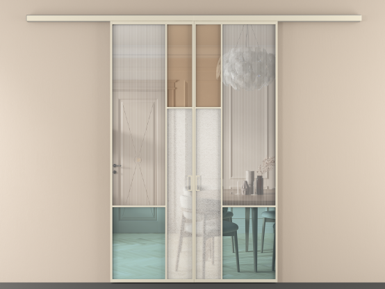 Во всех алюминиевых перегородках, независимо от типа установки, используется компланарный раздвижной механизм, благодаря которому декоративная крышка и полотно находятся в одной плоскости.