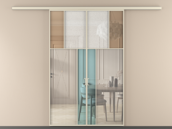 Во всех алюминиевых перегородках, независимо от типа установки, используется компланарный раздвижной механизм, благодаря которому декоративная крышка и полотно находятся в одной плоскости.