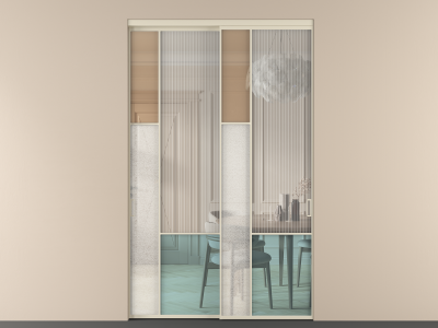Дополнительно на раздвижную двустворчатую перегородку вдоль стены и четырехстворчатую перегородку внутри проема с двумя неподвижным полотнами можно установить механизм синхронного открывания — при открывании одной створки, вторая открывается автоматически.