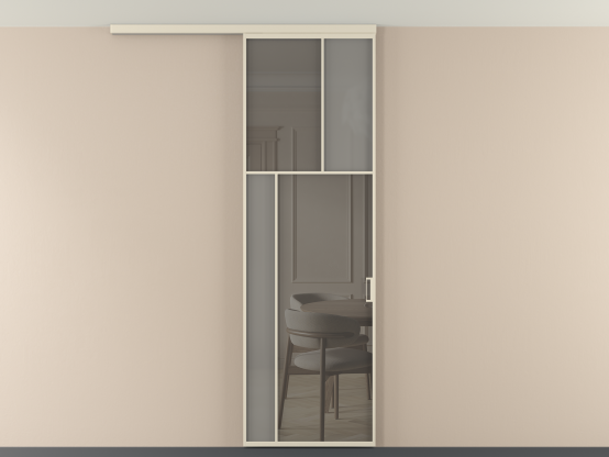 Во всех алюминиевых перегородках, независимо от типа установки, используется компланарный раздвижной механизм, благодаря которому декоративная крышка и полотно находятся в одной плоскости.