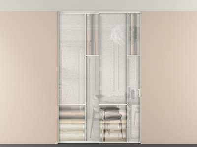 Дополнительно на раздвижную двустворчатую перегородку вдоль стены и четырехстворчатую перегородку внутри проема с двумя неподвижным полотнами можно установить механизм синхронного открывания — при открывании одной створки, вторая открывается автоматически.