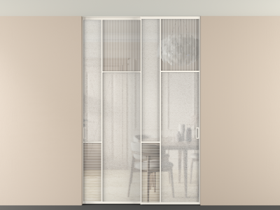 Во всех алюминиевых перегородках, независимо от типа установки, используется компланарный раздвижной механизм, благодаря которому декоративная крышка и полотно находятся в одной плоскости.
