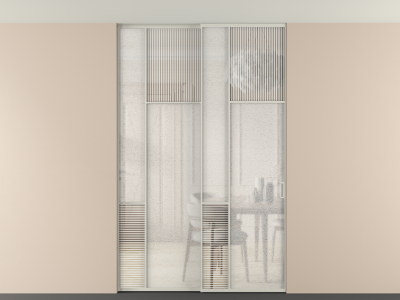 Во всех алюминиевых перегородках, независимо от типа установки, используется компланарный раздвижной механизм, благодаря которому декоративная крышка и полотно находятся в одной плоскости.