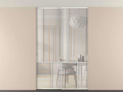 Во всех алюминиевых перегородках, независимо от типа установки, используется компланарный раздвижной механизм, благодаря которому декоративная крышка и полотно находятся в одной плоскости.