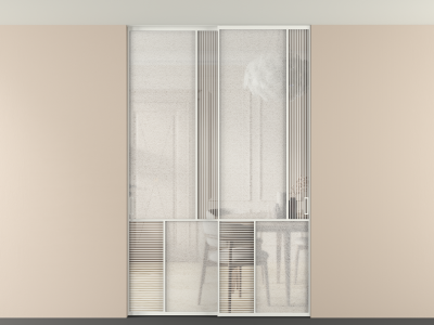 Во всех алюминиевых перегородках, независимо от типа установки, используется компланарный раздвижной механизм, благодаря которому декоративная крышка и полотно находятся в одной плоскости.