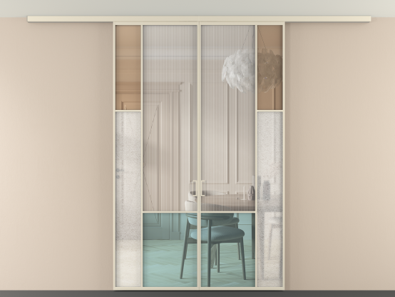 Во всех алюминиевых перегородках, независимо от типа установки, используется компланарный раздвижной механизм, благодаря которому декоративная крышка и полотно находятся в одной плоскости.