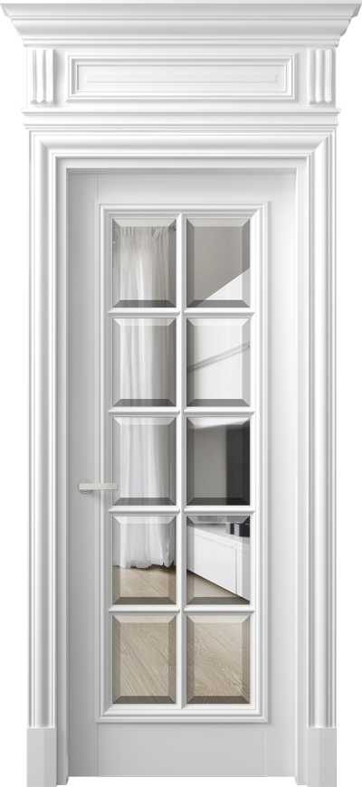 Антик 7310. Матовый белоснежный Прозрачное стекло с фацетом
