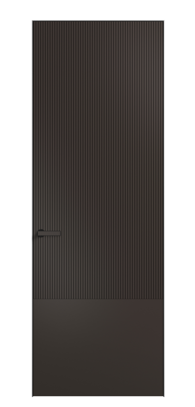 Это полотна с рельефной фрезеровкой. Этот прием делает интерьер объемным, тактильным, вносит интересную текстуру и создает современный образ. Волнистый рельеф может быть выполнен по ламелям из массива дуба в древесных матовых отделках, либо исполнен по натуральному и экологически безопасному материалу — ХДФ, покрытому гладкой эмалью актуальных оттенков.